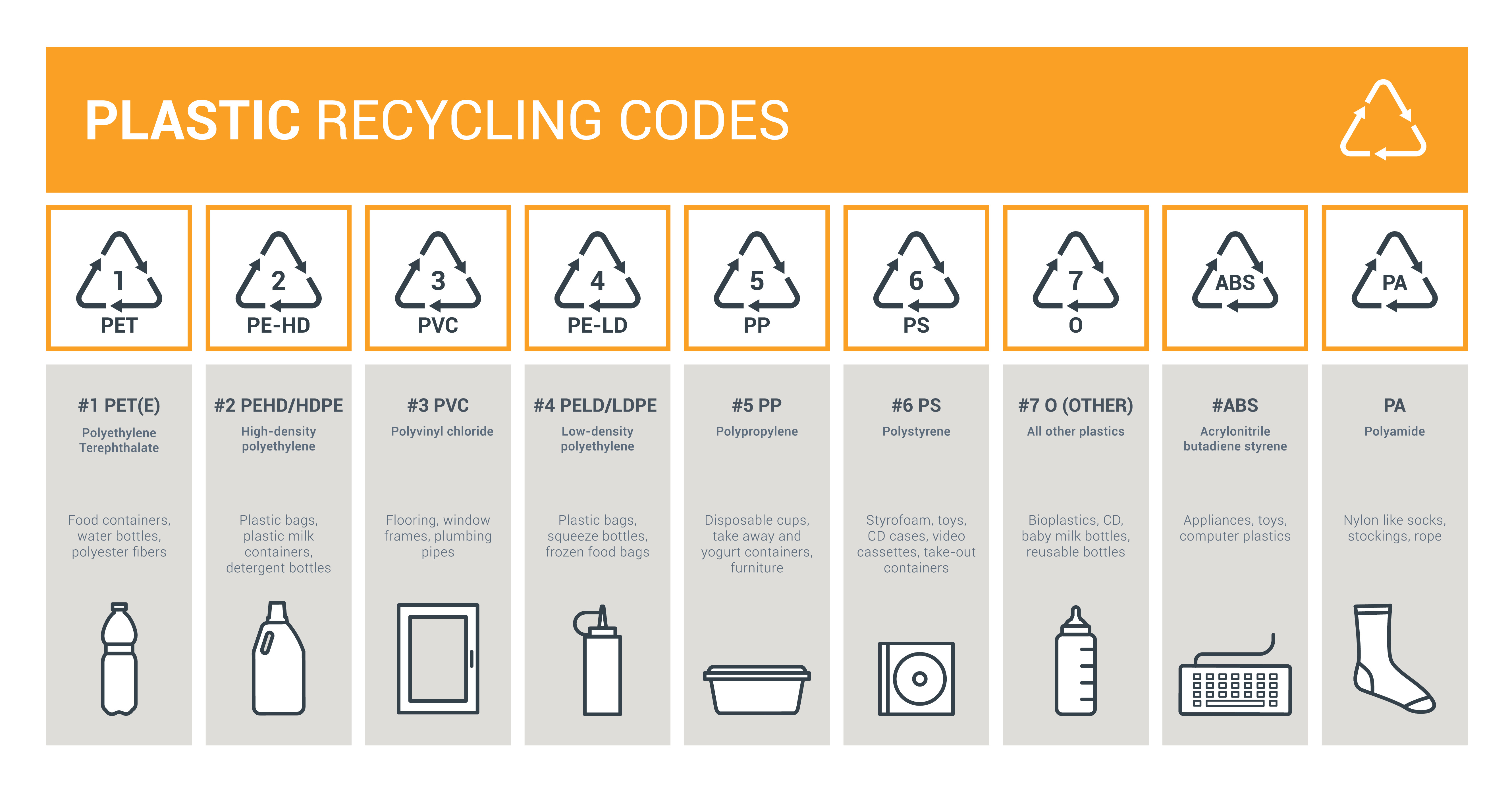 Now, you may be wondering what are all those “numbers” that are sometimes located on a plastic packaging. These numbers inform the consumer about the type of plastic used and give an indication of its recyclability. In general (and depending on your waste management company), #1, #2, #4 and #5 are easily recyclable. The others usually require special attention and need to be dropped off at recycling centers outside of your community’s waste management program. If you want to learn more about each type of plastic from P.E.T. to P.A, take the time to read this great article from eartheasy.com on each type of plastic and study the image below.